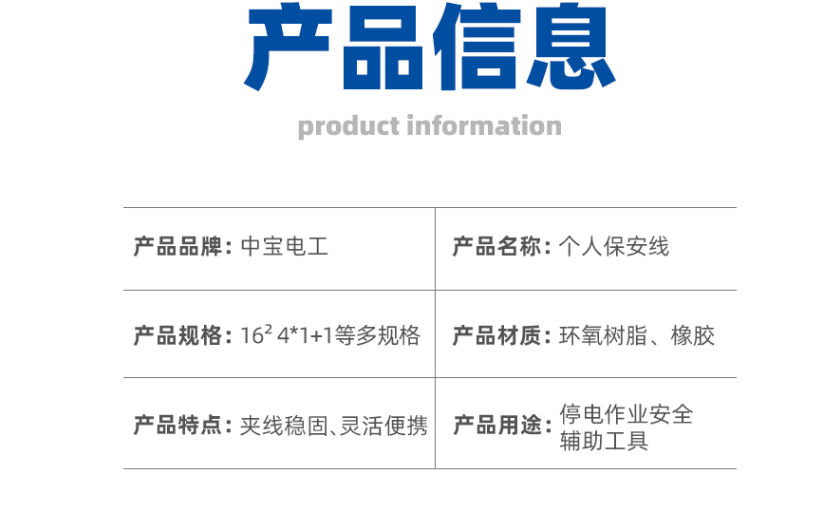中宝电工 低压个人保安接地线 保安钳接地线 安全保障 正品保证